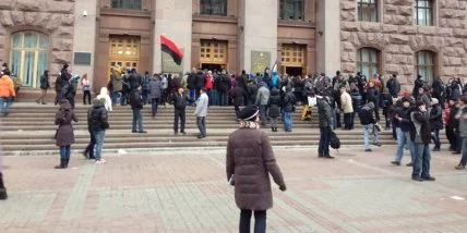 На данный момент возле здания остаются около 50 человек, которые пытаются туда прорваться, однако здание Киевской горадминистрации на Крещике, 36, усиленно охраняется – в холле находится подразделение силовиков.