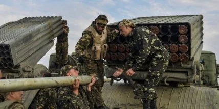 Силы АТО накрыли из систем залпового огня БМ-21 роту террористической группировки "Призрак" Алексея Мозгового восточнее Дебальцево.