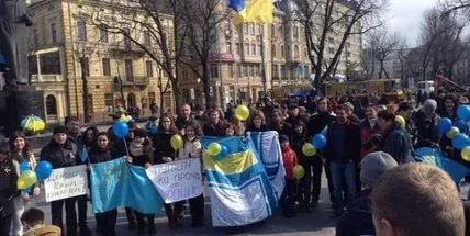 В воскресенье, 15 марта, во Львове возле памятника Тарасу Шевченко на проспекте Свободы прошла акция "Крым - это Украина".
