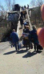 Добавим, после подрыва боевиками моста через Северский Донец в Станице Луганской местным жителям приходится преодолевать значительные трудности, чтобы пересечь реку. На некоторых участках полуразрушенного моста приходится перемещаться с помощью веревок. Позднее, местные жители положили на мост деревянные доски.