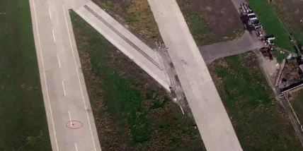 Вместе с тем, и на этом видео есть возможность увидеть пять отверстий круглой формы, которые располагаются по всей взлетной полосе возле осевой линии, сообщается в пресс-службе Генштаба. Исходя из разъяснений военных инженеров, которые производили подрыв взлетной полосы, этими отверстиями являются воронки размером 3 на 5 метров и глубиной 2 метра каждая. Друг от друга они расположены на расстоянии 700 метров.