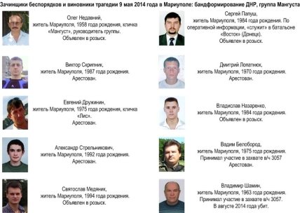 "В Мариуполе, в бандформирование "ДНР" входили около 80 человек. Разделены они были на 4 группы, среди них было "подразделение Мангуста" (до 15 человек), которое не подчинялось местным "руководителям". Именно члены этого бандформирования несут ответственность за убийства 6 наших сотрудников милиции и военнослужащих, которые произошли при захвате и пожаре в здании горуправления милиции на Георгиевской", - отметил начальник донецкой милиции.