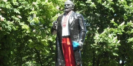 В Волновахе памятник Ленину активисты "одели" в вышиванку и красные шаровары.