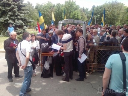 На подступах к площади собрались журналисты, депутаты областного и городского советов, чиновники, а также около тысячи человек с украинскими флагами. Никаких требований последние не выдвигают - говорят, просто хотят пройти в ОГА.