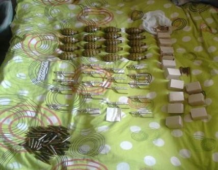 "В ходе обысков в помещениях четырех местных жителей сотрудники СБУ изъяли 19 гранат Ф-1 и 18 запалов к ним, 3 гранаты РГД-5, ручную противотанковую гранату РПГ-40, винтовку системы "Мосина", пистолет системы "Наган" и патроны различных калибров", - говорится в сообщении.