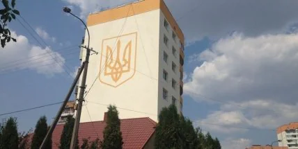 В Ровно гигантский трезубец нарисовали на девятиэтажке, где были проведены работы по утеплению.