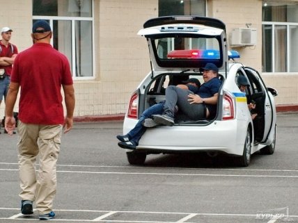 "К учениям присоединился и губернатор Михаил Саакашвили, переодевшийся в тренировочную форму полицейских - темно-синюю футболку и кепку. Он лично "паковал" в багажник полицейской машины раненого и проверял документы у нарушителей правил дорожного движения. При этом он и сам побывал в багажнике полицейской машины", - указывается в публикации.