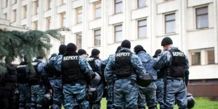 Вокруг митингующих находятся отряды милиции и спецподразделения "Беркут".