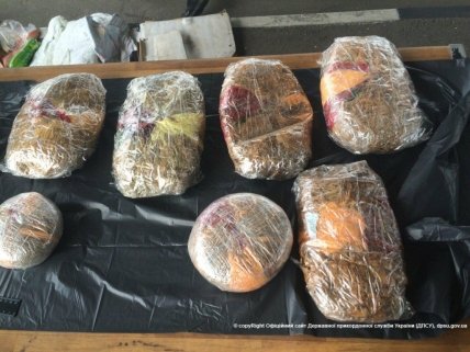 "Почти 12 килограммов наркотического вещества, предварительно марихуаны, обнаружили сегодня утром в пункте пропуска "Гоптовка" пограничники Харьковского отряда совместно с работниками таможни. Во время проведения проверки автомобиля ВАЗ, который следовал на выезд из Украины, пограничники заметили, что водитель автомобиля вместе с пассажиркой заметно нервничают. Кроме того, при осмотре на задние стойки транспортного средства сработала служебная собака Диана".