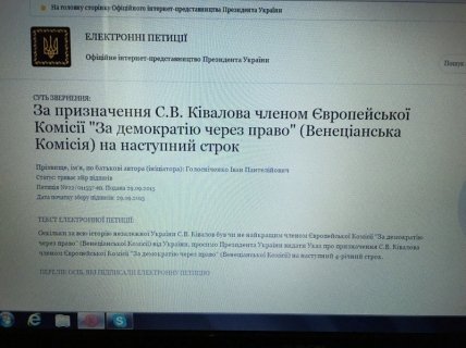 В Интернете распространяются фотографии монитора с призывом "до пятницы" проголосовать за петиции, касающиеся Сергея Кивалова.