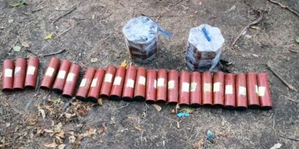 "Правоохранители обнаружили два самодельных взрывных устройства, которые представляют собой связки из 7 детонаторов переходных универсальных (ДПУ) с кумулятивным снарядом внутри, а также 23 несвязанных между собой детонатора. Изъятая взрывчатка отправлена на экспертизу. Проводятся мероприятия, направленные на установление личности владельца обнаруженной опасной находки", - говорится в сообщении.