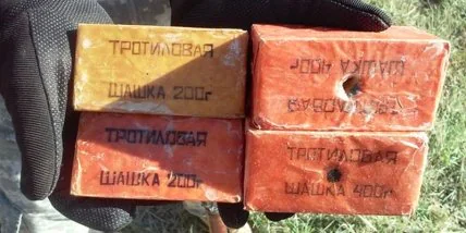 "В ходе проверки оперативной информации сотрудниками главного управления СБУ совместно с артемовской милицией в пещерах недалеко от села Иванград Артемовского района был найден тайник с боеприпасами и взрывчатыми веществами. В деревянном ящике находились 3 гранаты типа "РГД-5", 1 запал от гранаты "РГД-5", 1 электродетонатор, 3 зажигательные трубки ручного изготовления, 2 тротиловые шашки весом 400 г и 2 весом 200 г, а также элемент динамической защиты танка. Кроме того, было обнаружено и изъято около 100 автоматных патронов калибра 5,45 мм", – говорится в сообщении.