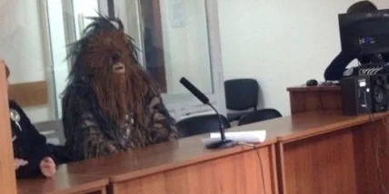 Как сообщается на сайте Киевского райсуда Одессы, в воскресенье в этот суд поступил протокол об административном правонарушении. Так, мужчина, переодетый в костюм Чубакки из фильма "Звездные войны" возле одного из избирательных участков под громкую музыку фотографировался с детьми. По требованию сотрудников полиции предоставить документы, удостоверяющие личность, он "осуществлял злостное неповиновение законному распоряжению сотрудника милиции", в связи с чем был составлен протокол по ст. 185 Кодекса об админнарушениях.