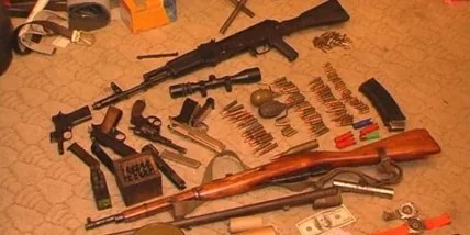 По данным правоохранителей, в ходе обыска у подозреваемого обнаружены и изъяты автомат Калашникова, 173 патрона различных калибров, 7 винтовок, в том числе три - с оптическим прицелом, пистолет "ТТ", револьвер "Наган", гранаты РГД-5, Ф-1, две свето-шумовые гранаты, дымовая шашка, электрошокер, а также маска-балаклава.
