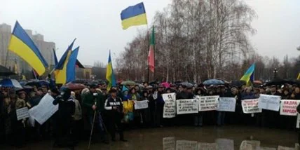Сегодня под горизбиркомом Кривого Рога в 12:00 началось вече против признания результатов выборов мэра города.