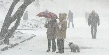 В центральной части - сильный снег и мокрый снег, метели, снежные заносы. Температура воздуха ночью 4-9 градусов мороза, днем 0-5 градусов мороза.