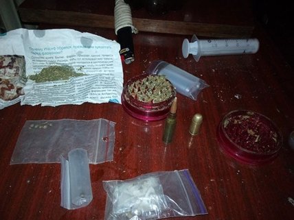 В результате было изъято 200 граммов свежей наркотического вещества "метамфетамин", подготовленной для реализации наркотическое средство "марихуана", стеклянные колбы, шприцы, химикаты, прекурсоры, принадлежности для изготовления "метамфетамина", а также боевые патроны.