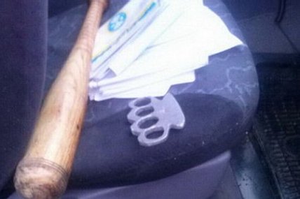 Когда полицейские тщательно осмотрели салон и багажник джипа, то обнаружили охотничий карабин "Сайга", похожий на автомат Калашникова, 60 патронов калибра 7,62 мм., нож, кастет, биту, а также бронежилет.