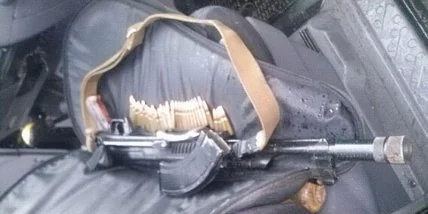 Когда полицейские тщательно осмотрели салон и багажник джипа, то обнаружили охотничий карабин "Сайга", похожий на автомат Калашникова, 60 патронов калибра 7,62 мм., нож, кастет, биту, а также бронежилет.