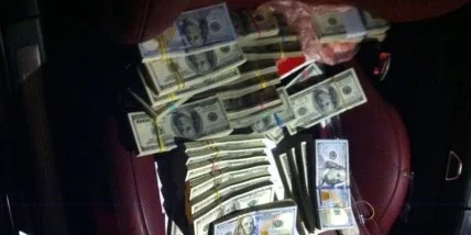 Сотрудники налоговой в понедельник провели обыск в машине, которой пользовался организатор незаконной схемы: было обнаружено более $315 тыс. и почти 1,4 млн грн. общая сумма изъятой наличности в гривневом эквиваленте составляла более 9,5 млн грн.