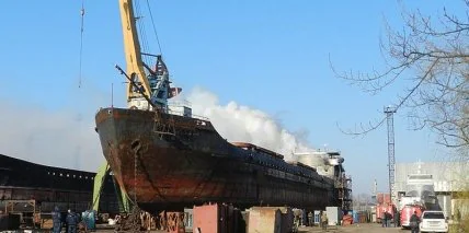 На территории судоремонтного завода "Коминтерн" возник пожар на сухогрузе, который находился на ремонте.