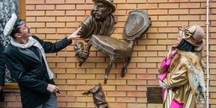 Бронзовую скульптуру, изображающую героя романа "Двенадцать стульев" Кису Воробьянинова, открыли в Харькове на ул.Ярослава Мудрого по случаю 45-летия выхода на экраны одноименного фильма Леонида Гайдая и Дня смеха.
