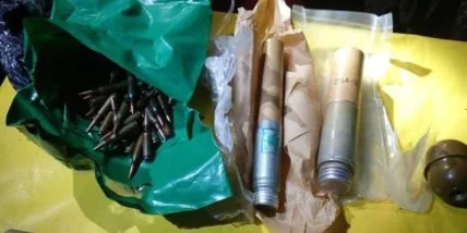 Во время осмотра квартиры мужчины правоохранители изъяли корпус ручной гранаты Ф-1, два корпуса ручных гранат РГД-5, три взрывателей УЗРГМ-2, два сигнальных патрона, свертки с патронами калибра 5,45 мм и 7,62 мм общим количеством более 1,5 тысячи штук.