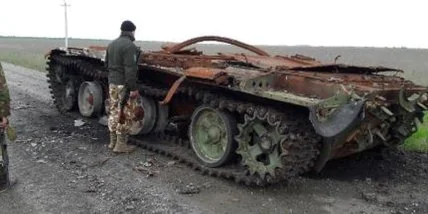 В зоне АТО найден подбитый российский танк и запрещенные противопехотные мины