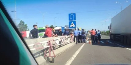 По данным полиции, водители, которые сегодня перекрыли трассу, не желают проезжать весовой комплекс, так как их машины перегружены, и они будут вынуждены платить штрафы.