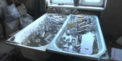 С места изъяты 5000 бутылок фальсифицированного коньяка. По подсчетам правоохранителей, за день в подпольном цехе производилось до 500 бутылок на заказ.