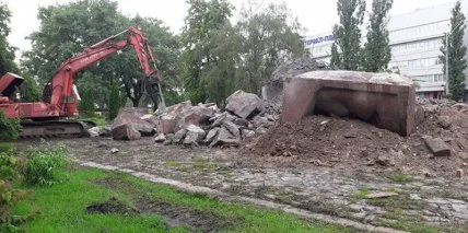 По состоянию на полдень воскресенья на месте постамента находятся глыбы гранита, оставшиеся от памятника и абсолютно отсутствует какая-либо строительная техника, а также сотрудники коммунальных служб.