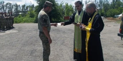 От имени Патриарха Филарета награды вручил военный капеллан оперативно-тактической группировки "Донецк" отец Александр. "По всему миру миллионы верующих молятся за Вас, чтобы наступил мир, и вы вернулись из войны к своим родным", - отметил отец Александр.