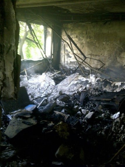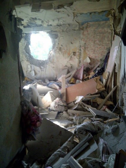 "15 июня в 04:53 в Службу спасения "101" поступило сообщение о пожаре в жилом доме по адресу: Марьинский район, г. Красногоровка, ул. Соняшна, 7. Было установлено, что в результате попадания артснаряда в 5-этажный 6-подъездный жилой дом произошло разрушение перекрытия между 1-м и 2-м этажами, а также частично между 1-м этажом и подвальным помещением и между 2-м и 3-м этажами. Разрушены перегородки в квартирах 2-ого этажа", - говорится в сообщении.