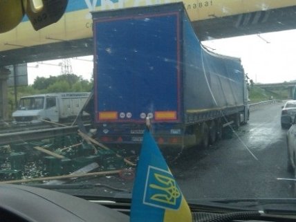 Как на трассе Киев-Чоп из фуры вывалились ящики с пивом