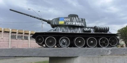 Пьяные супруги, прогуливаясь в состоянии алкогольного опьянения, разрисовали памятник танкистам времен Второй мировой войны в Киеве.