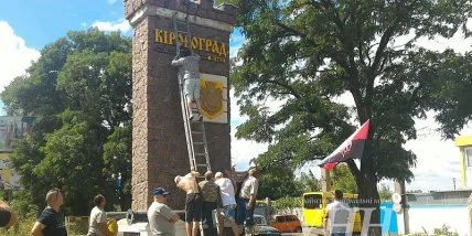 На вьезде в Кропивницкий активисты сменили стелу с Кировоградом