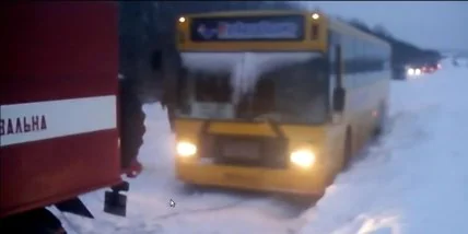 МЧСники вытаскивают автобус из сугробов (Видео)