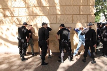 После того, как участники марша на автобусе покинули Приморский бульвар, нападавших, по данным правоохранителей, увезли в Приморский отдел полиции города.