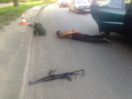 В Харькове патрульные задержали мужчину в камуфлированной одежде, который стрелял в автомобиле такси из автомата.