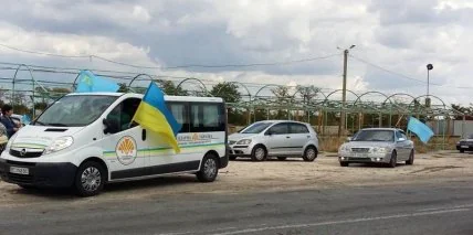 Вблизи административной границы с аннексированным Крымом проходит акция крымских татар, посвященная первой годовщине гражданской блокады полуострова.Об этом заявил координатор гражданской блокады Крыма Ленур Ислямов.