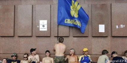 Как сообщили в пресс-службе Черкасской городской организации ВО «Свобода», в это время проходило пикетирование областного совета в знак протеста против решения снести палаточный городок защитников украинского языка. Участники выкрикивали: «Банду геть!», «Ганьба!», «Зека – на нари!» и др.