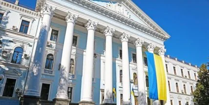 Фасад здания Министерства обороны Украины сегодня украшает флаг, который вручную сшили и подарили волонтеры.