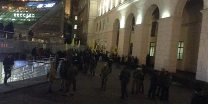 После этого со стороны Европейской площади к Майдану Независимости направилась группа молодых людей в закрывающих лица масках, которые затем с криками бросились к стеле. В толпе протестующих слышны крики "провокаторы!".