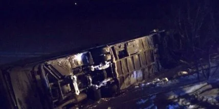 На Криворожской трассе в субботу вечером из-за сложных погодных условий перевернулся автобус с детьми, которые ехали на гастроли в Днепр.