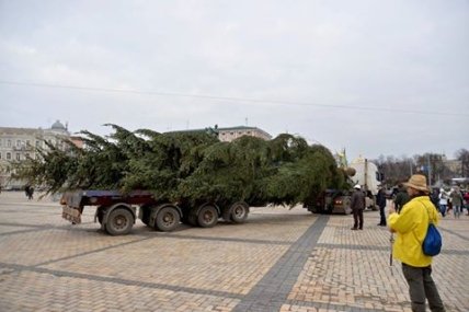 Он напомнил, что елку привезли вчера из Ивано-Франковской области, Надворнянский район.