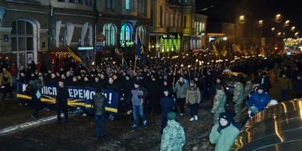 В воскресенье в Харькове от Площади Конституции по Сумской улице к Каскаду прошло факельное шествие патриотических сил, возглавляемое лидерами партии "Национальный корпус" и Гражданского корпуса (ГК) Азов.