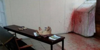 "Выездом на место происшествия установлено, что неизвестные лица облили вход в указанный комплекс краской красного цвета и оставили отрезанную голову свиньи. С места происшествия изъяты ряд вещественных доказательств", - говорится в обнародованной информации.