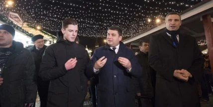 Вместе с Киевским городским головой Виталием Кличко Владимир Гройсман прогулялся предпраздничным центром города - от Михайловской площади Владимирским проездом к Софийской площади - и посетил рождественскую ярмарку.