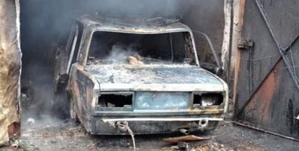 В результате пожара огонь полностью уничтожил гараж и автомобиль, находившийся внутри.