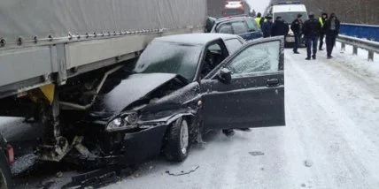В Пустомытовском районе, вблизи с.Деревач, легковой автомобиль ВАЗ, не справившись с управлением, въехал в отбойник. В результате удара, машину отбросило в прицеп фуры МАN.